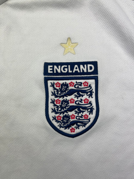 INFO - Home shirt as worn at the 2006 World Cup as England topped Group B and went on to reach the quarter finals, losing on penalties to Portugal. Players in the squad included Lampard, Rooney, Beckham, Gerrard, Ferdinand, Owen