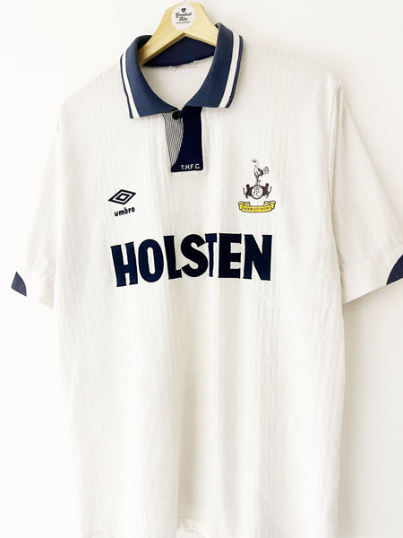 INFO – Rare home shirt as worn as Spurs finished 15th in the First Division and then 8th in the Premier League. Players in the squad included Linekar, Mabbutt, Ruddock, Barmby, Gray, Gascoigne