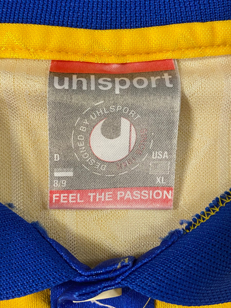 FEATURES - Club crest and Uhlsport logo are stitched, sponsor is felt
