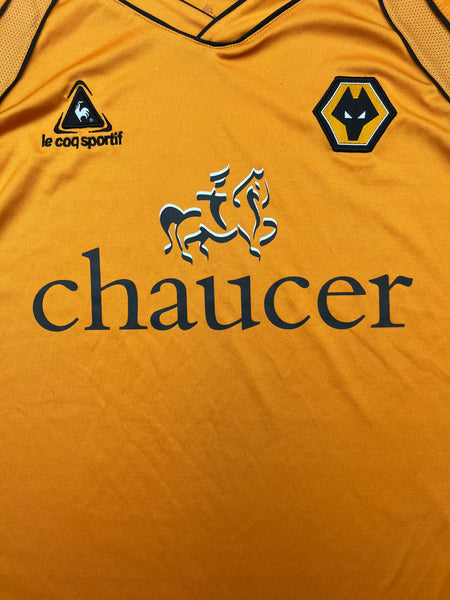 INFO – Home shirt as worn as Wolves finished 5th in the 2006/07 Championship, but lost 4-2 on aggregate to West Brom in the play-off semi finals. Players in the squad included Bothroyd, Craddock, Cort, Olofinjana, Potter, Henry