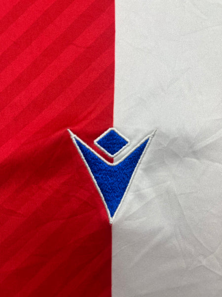 FEATURES - Club crest and Macron logo are stitched, sponsor is printed