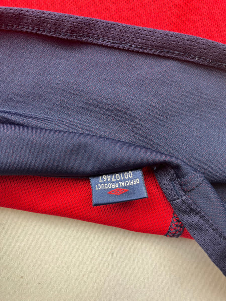 CONDITION - Excellent. Nice material feel with bright colours. Red side: Team crest and Umbro logo are pristine. Blue side: Badges are suoerb. Size label has been removed (pit to pit measures 25”). Overall 9/10