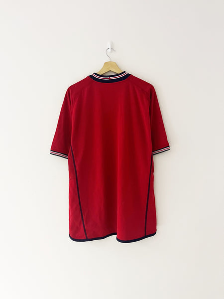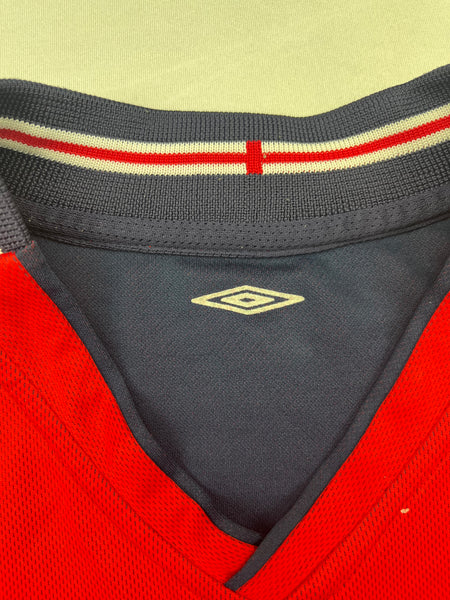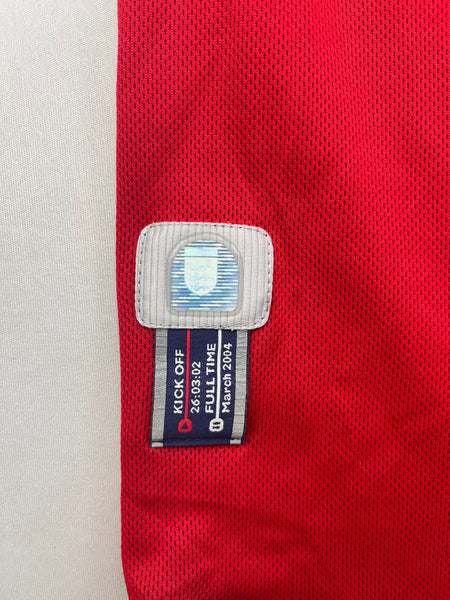 INFO - Away shirt as worn as England reached the quarter finals of the 2002 World Cup. Players in the squad included Beckham, Owen, Heskey, Scholes, Campbell