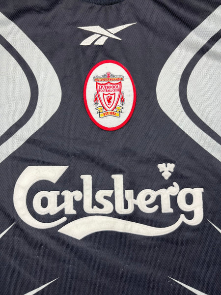 INFORMACIÓN - La camiseta de portero tan usada como la del Liverpool terminó séptimo en la Premier League bajo el mando de Gerard Houllier. La camiseta fue utilizada como camiseta de Tercera en la siguiente campaña. Los jugadores en el equipo incluían a Friedel, James, Nielsen, Warner.