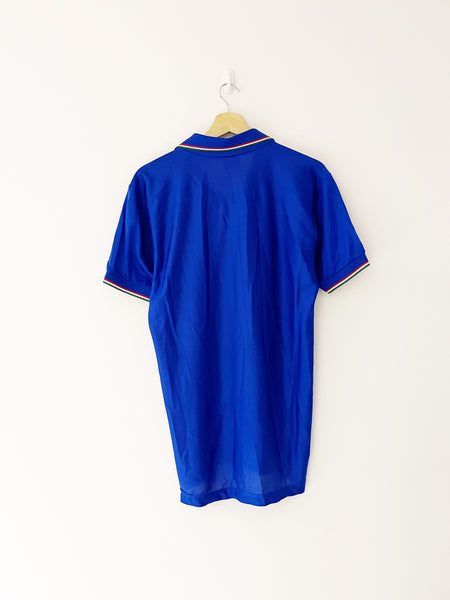 INFO – Home shirt as worn by the hosts of the 1990 World Cup. The side reached the semi finals, losing to Argentina on penalties. Players in the squad included Bergomi, Baresi, Schillaci, Ancelotti, Altobelli, De Napoli, Baggio