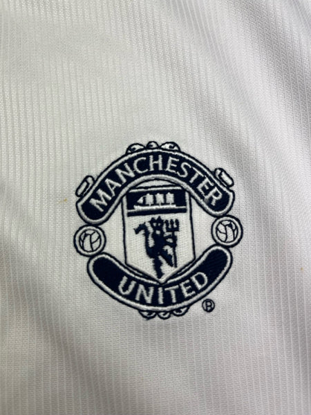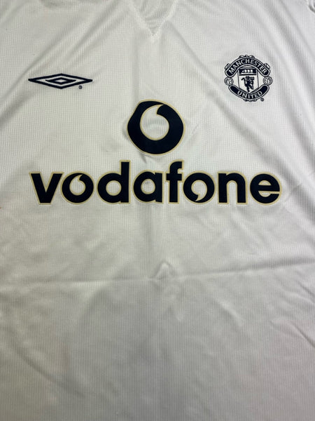 INFO - Away shirt as worn as Man Utd won their third Premier League title in a row under manager Alex Ferguson. Players in the squad included Keane, Solskjaer, Sheringham, Beckham, Scholes, Neville