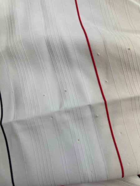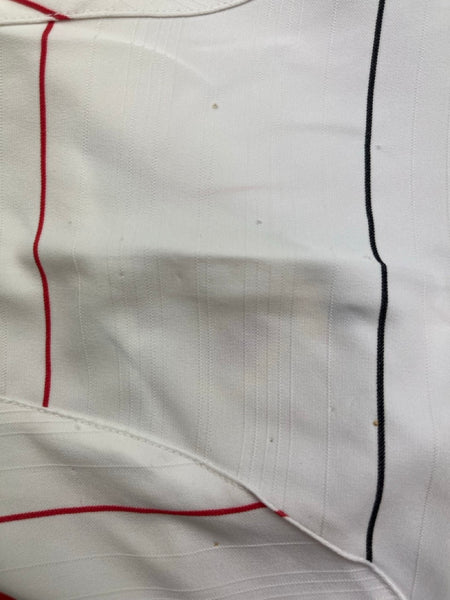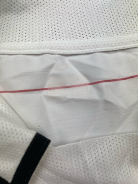 CONDITION - Very good. Nice material feel with bright colours. Badges are perfect. Sponsor just has one tiny fleck of wear. Several very tiny pin holes on the shoulders (see photos for close ups). Overall 6.5/10