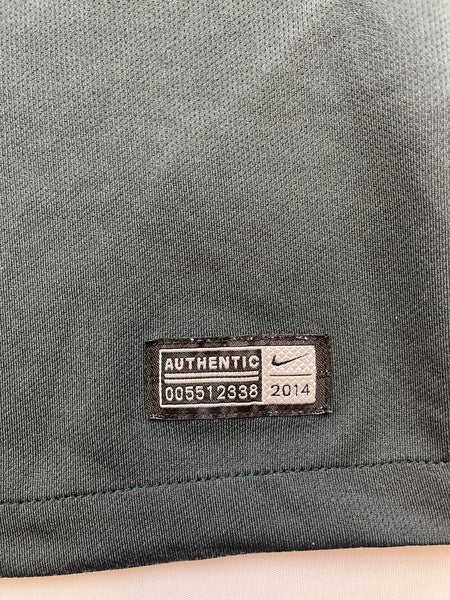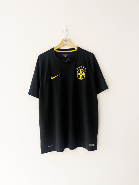 INFO - Rare third shirt as worn as Brazil hosted the 2014 World Cup. The side reached the semi finals, finishing in 4th place. Players in the squad included Hulk, Silva, Neymar, Fred, Alves